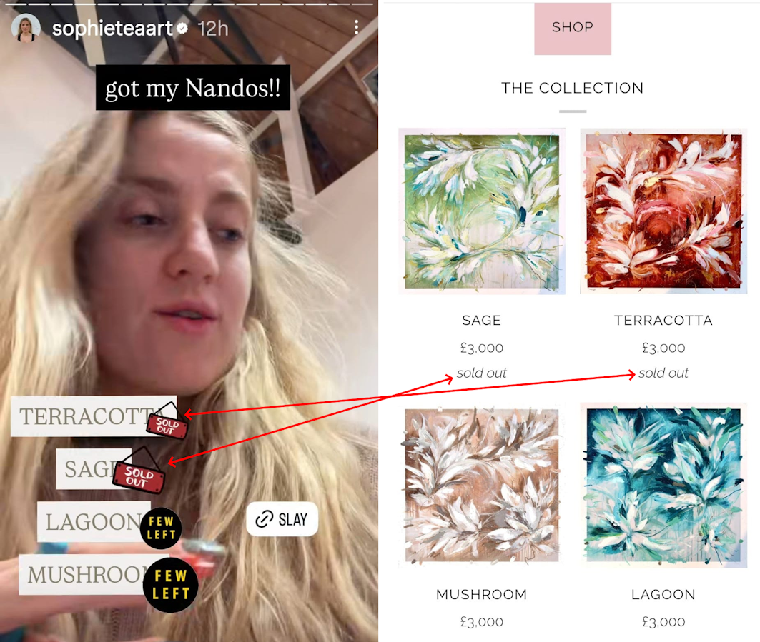 She then had 25 prints made of each painting and as the image below shows, when the screenshot was taken two sets had totally sold out… not bad at £3,000 each! ($4,110 ATOW)